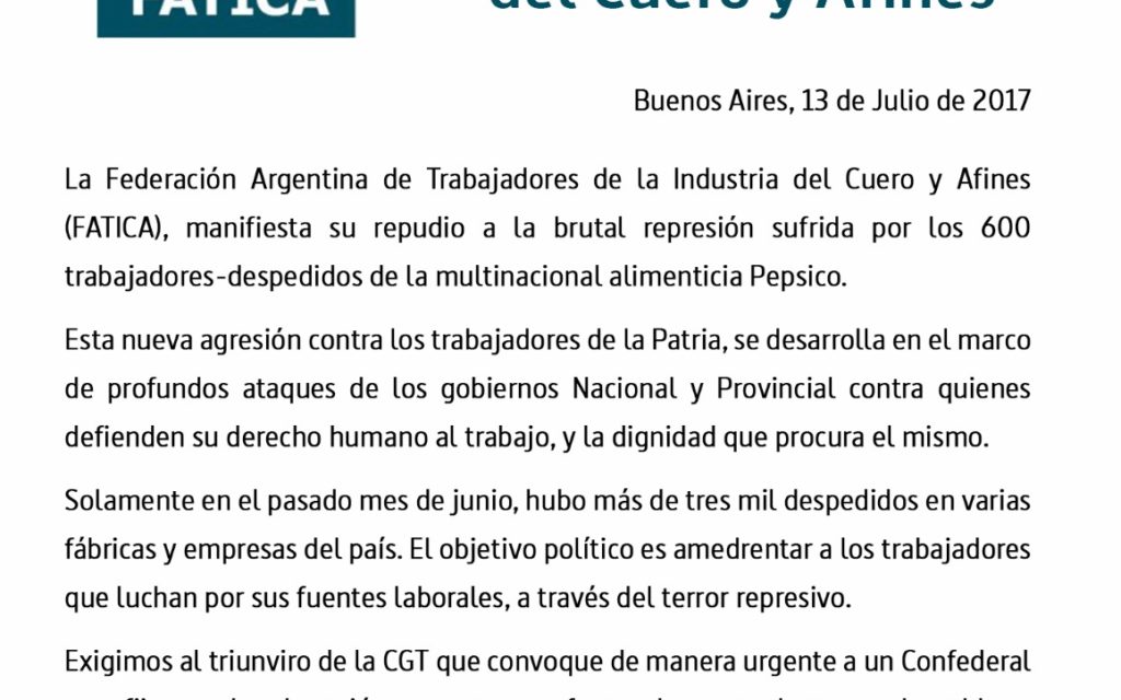FATICA repudia la represión en Pepsico